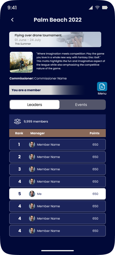 My primary goals in taking charge of the app were to ensure correctness, efficiency, and maintainability in design. Focused on enhancing functionality, I aimed to create an app that provides easy access to the league and fosters interaction between users. Implementing a user-friendly navigation system and a robust design system, I sought to boost engagement through features like badges and points, resulting in a well-rounded and captivating user experience.